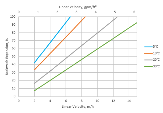 离子交换树脂的压降取决于粒度分布、床层高度、树脂颗粒间空隙体积,以及物料的流速和粘度。 任何对这些参数的影响-比如被树脂床层截住的颗粒物、对树脂床层的异常压缩、床层的不规则分布-都会对压降产生不利影响,造成压头损失。 针对不同的物料质量、应用环境和系统设计,流速可能处于10 – 40 BV/h范围内变化。